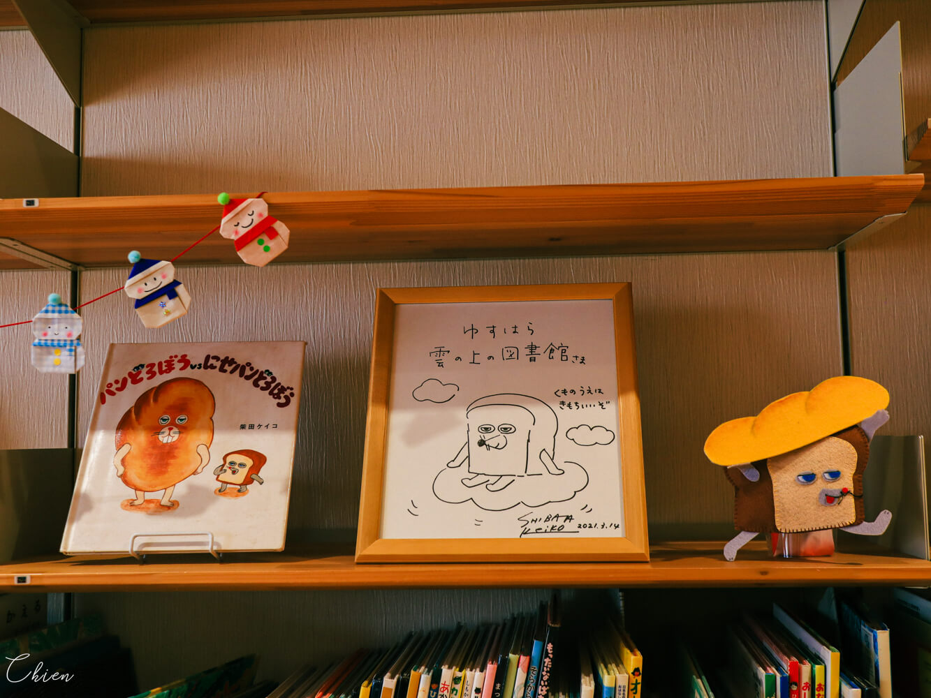 童書區放了知名繪本《麵包小偷 》作者柴田啓子的簽名和親自手繪,好可愛。