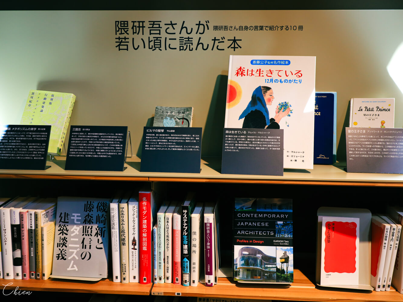 館內也特別設置了隈研吾專區,除了有隈研吾先生的親筆簽名,還有他年輕時所閱讀過並推薦的 10 本書籍。