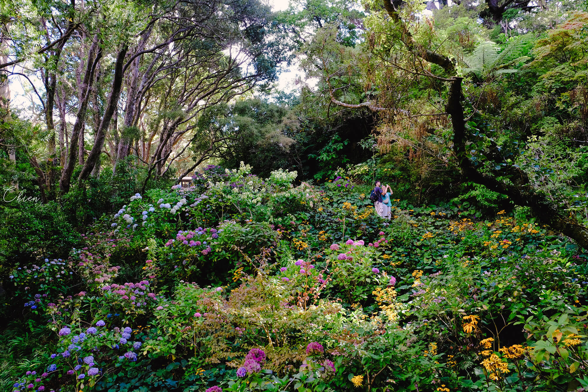 那一天,很幸運地趕上繡球花花季,在花園裡意外地捕捉到了這幅美麗的風景。