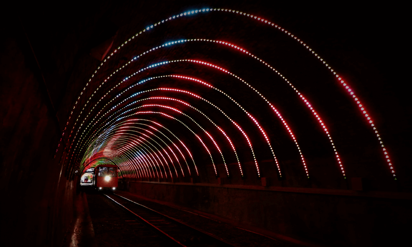 乘車的時間並不會太長,總共有五個停靠站。從市區的「Cable car lane lambton quay」入口出發,會經過長達約 100 公尺的 The time-travelling tunnels,由 LED 燈織成的七彩通道,如夢似幻。接著列車將依序停靠 CLIFTON、TALAVERA、SALAMANCA、KELBURN。當時我們乘坐的纜車上,大部分都是遊客,但是也有見到當地人利用這座纜車,而且他們似乎也了解遊客的興奮,人還很親切地讓了視野比較好的座位給我們。